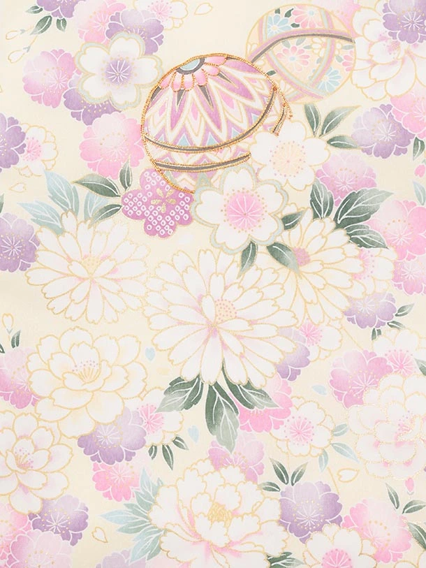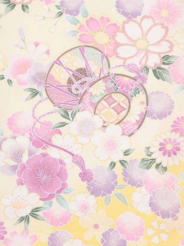 女児産着 お宮参りレンタルR003 薄黄色 マリに桜