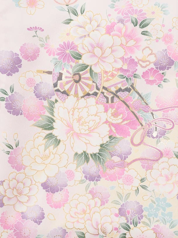 夏用 女児産着 お宮参りレンタルR005 単衣 薄ピンク 花車に桜