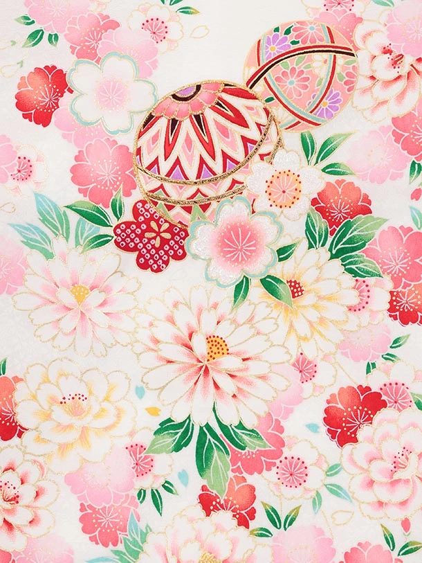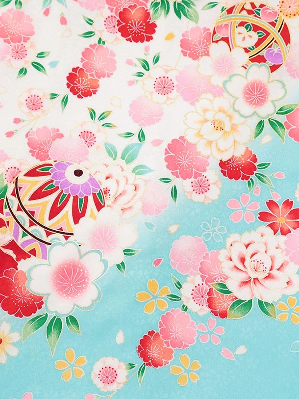 夏用 女児産着 お宮参りレンタルR011【正絹単衣】 白地裾水色 鞠に花づくし