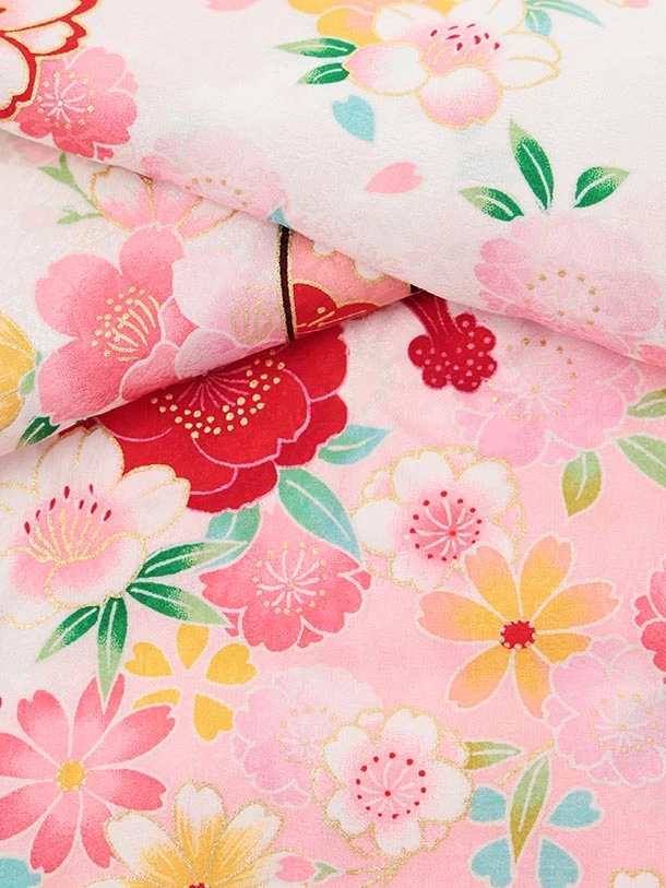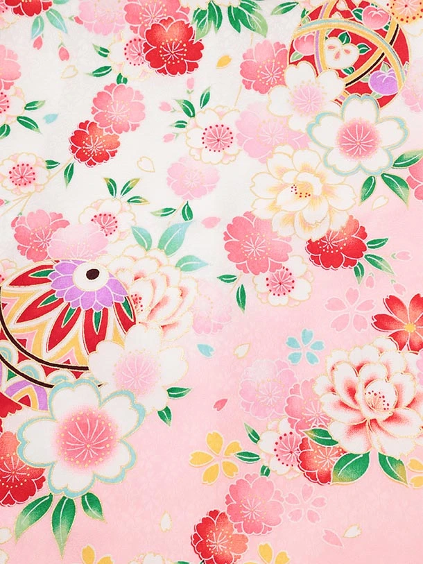 夏用 女児産着 お宮参りレンタルR013【正絹単衣】 白地裾ピンク 鞠に花づくし