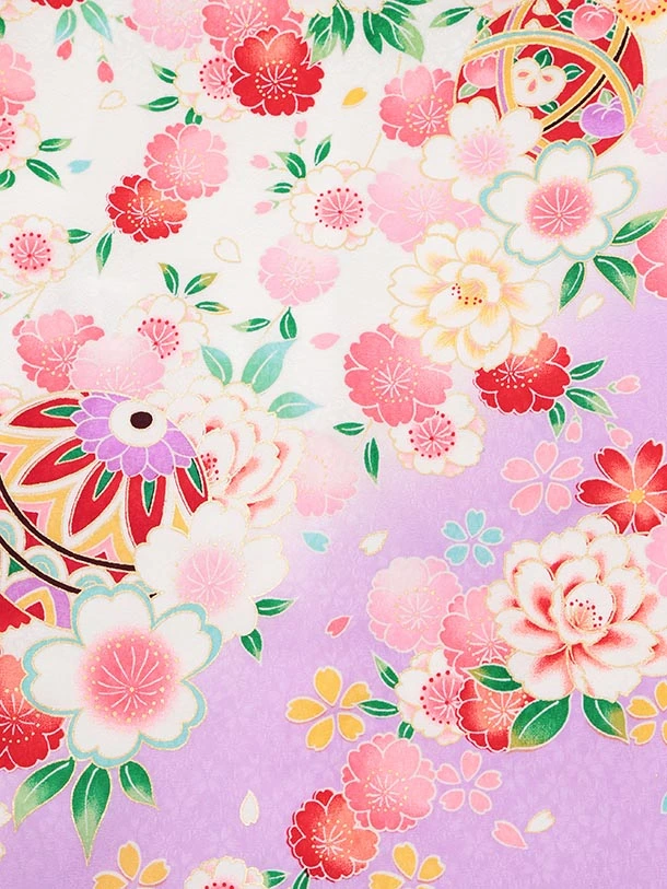 夏用 女児産着 お宮参りレンタルR014【正絹単衣】 白地裾紫 鞠に花づくし