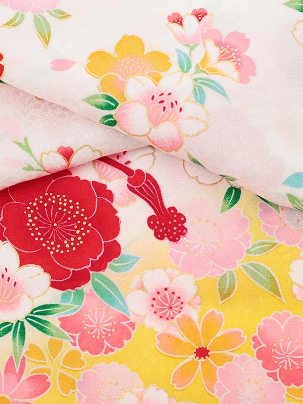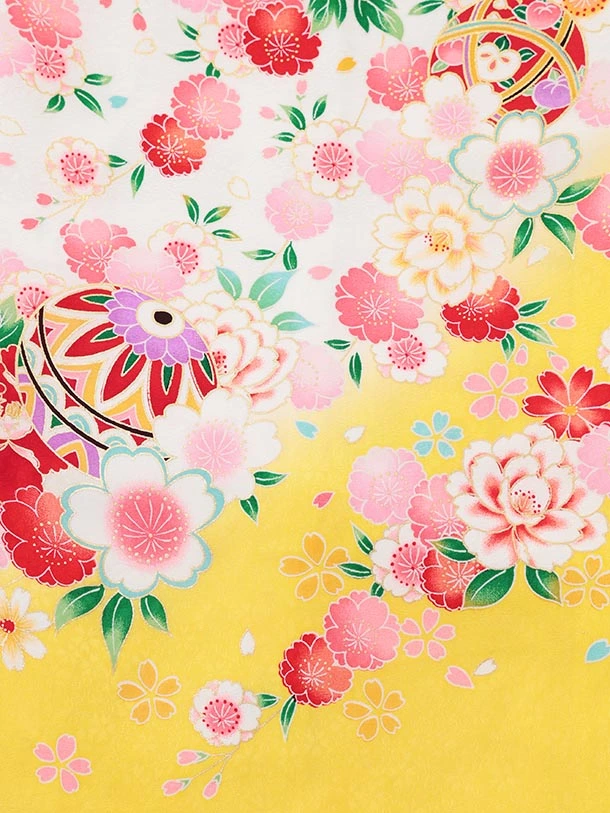 夏用 女児産着 お宮参りレンタルR015【正絹単衣】 白地裾黄色 鞠に花づくし
