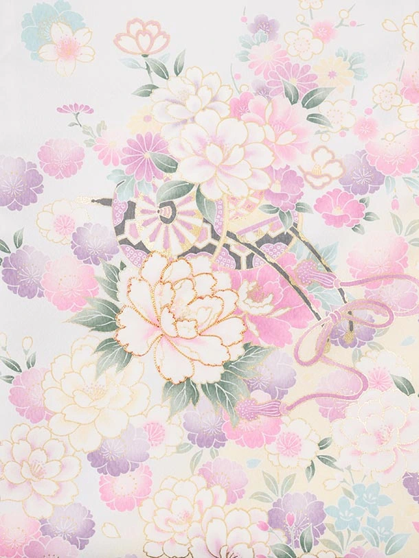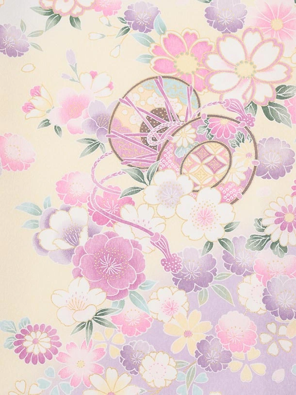 女児産着 お宮参りレンタルR016 薄パープル 花車に桜