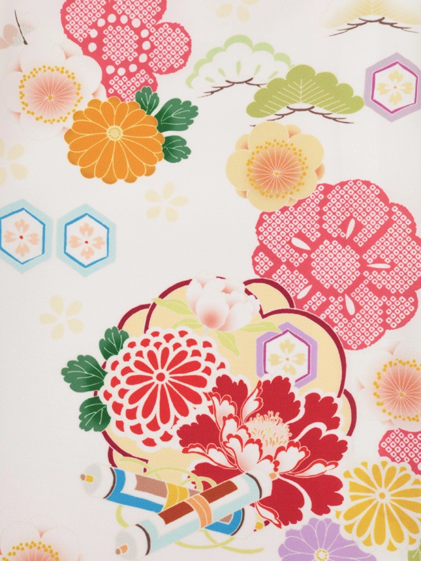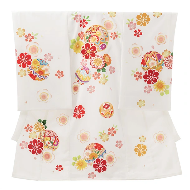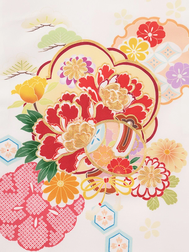 女児産着 お宮参りレンタルR023 白地 牡丹に松竹梅