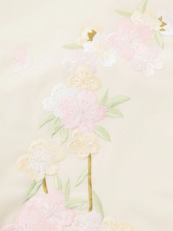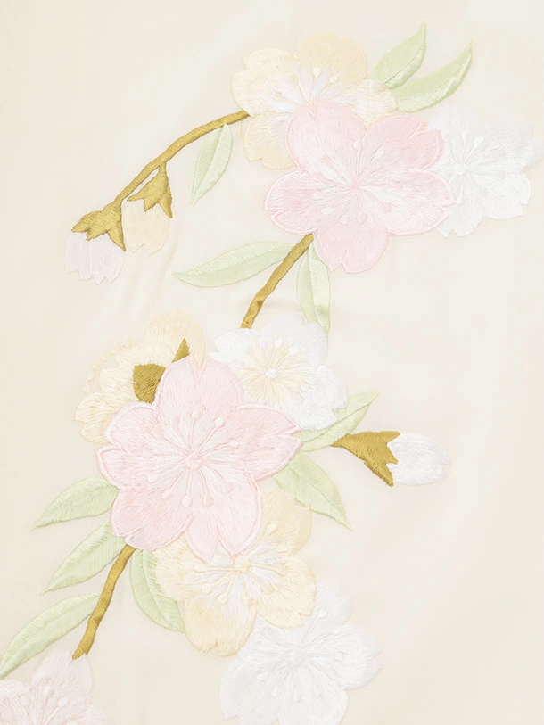 女児産着 お宮参りレンタルR025 薄黄ベージュ 刺繍桜