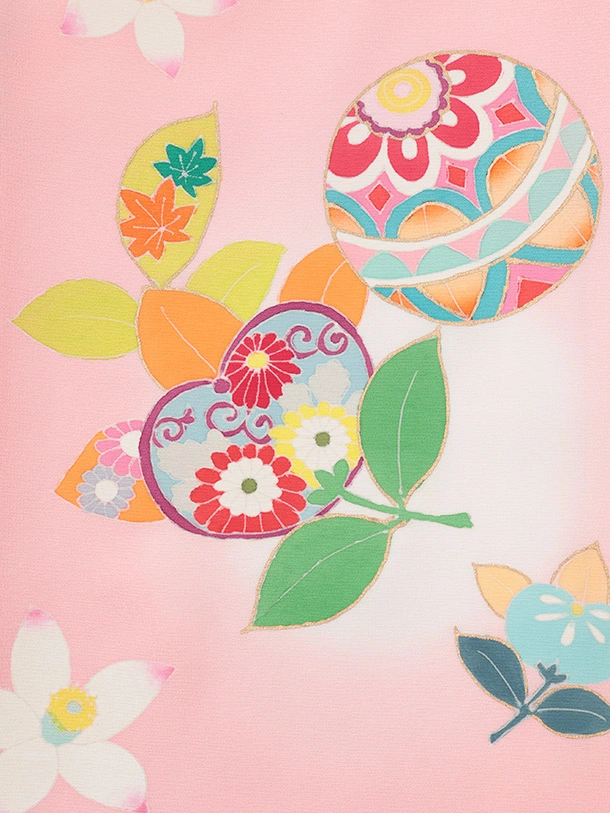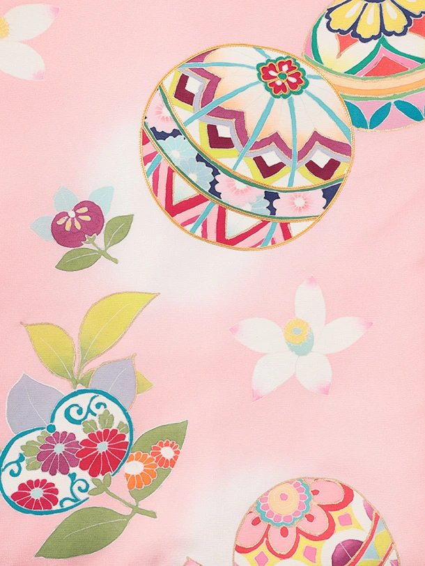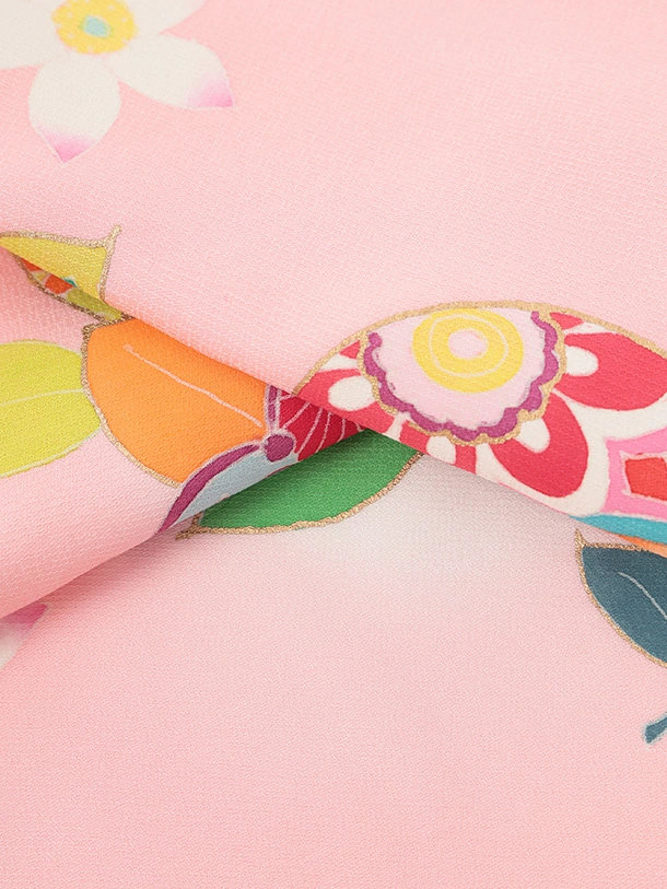女児産着 お宮参りレンタルR059 【高級正絹】ピンク地 まりに橘