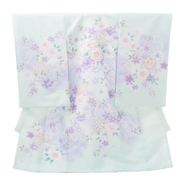 女児産着 お宮参りレンタルR069 薄ミント まりに花
