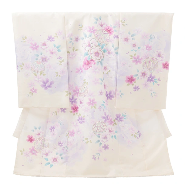 女児産着 お宮参りレンタルR070 薄黄 まりに花