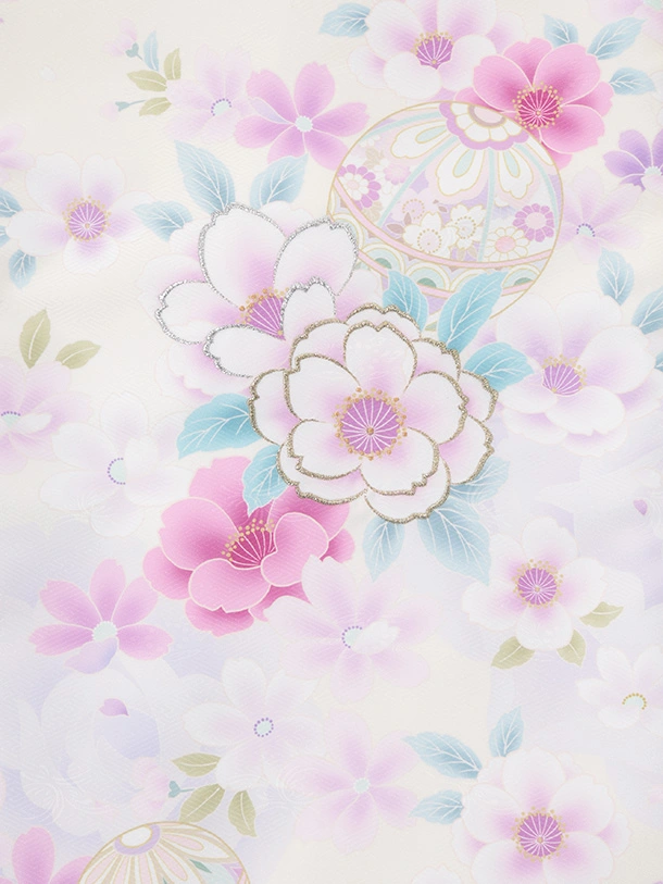 お祝い着をかける時は 絵柄がよく見える様に広げ抱いた子供の体を覆う様に掛け産着の付紐の一方を肩側から他方を脇から通して 抱き手の方の背で蝶結びにします。