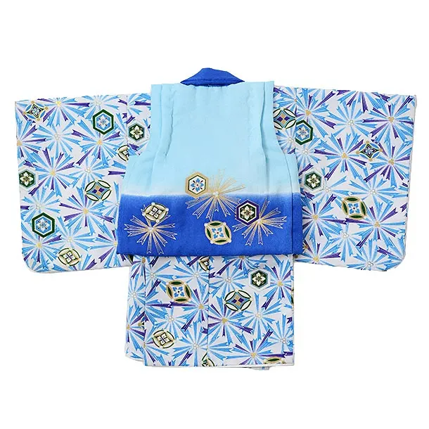 男児【100日~1歳用】0023 白地松葉×水色被布/セパレート