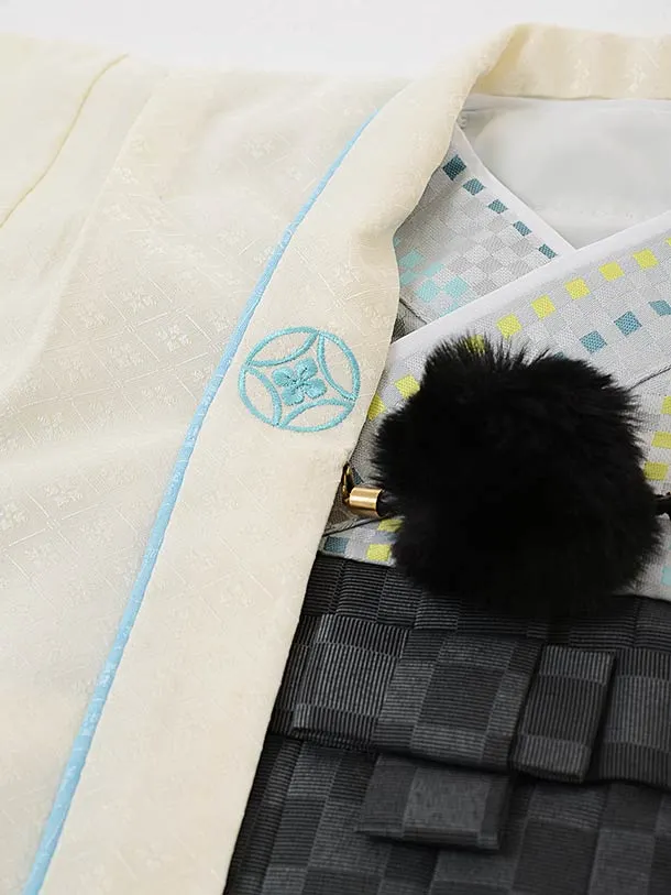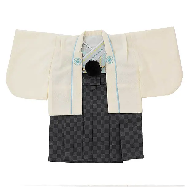 男児【100日~1歳用】 0058 オフ白/市松羽織袴セット/一体型
