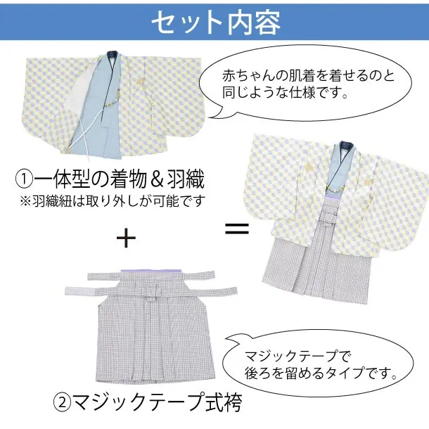 着物は赤ちゃんの肌着を着せるのと同じような仕様です。