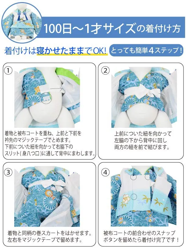 簡単に着せられる人気のベビー被布着物です。