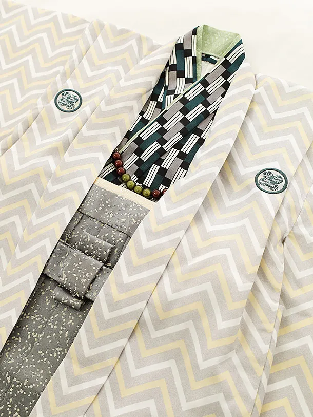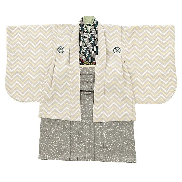 男児【1歳前後】0134 グレーベージュジグザクxグレー袴