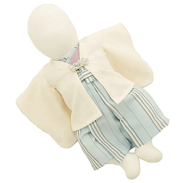 男児【100日~1歳用】00138 アイボリー×水色袴/一体型