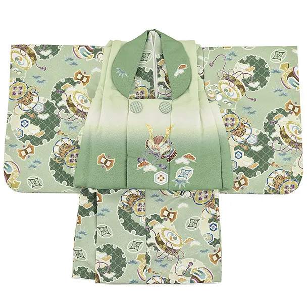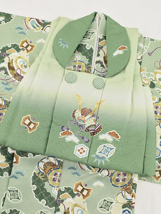 男児【100日~1歳用】0150 グリーンぼかし兜/グリーン吉祥文様/セパレート