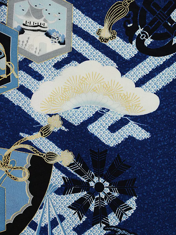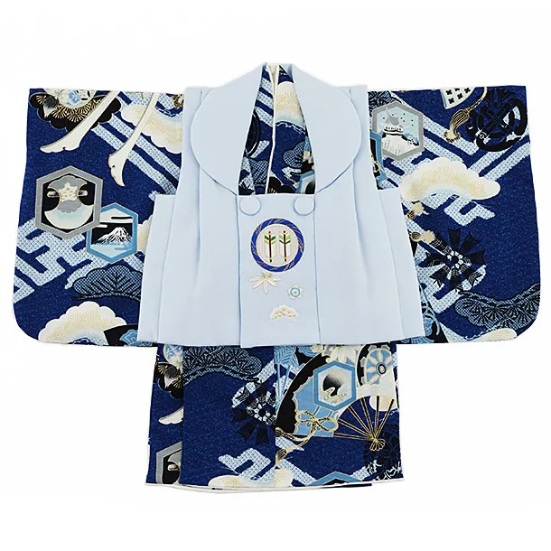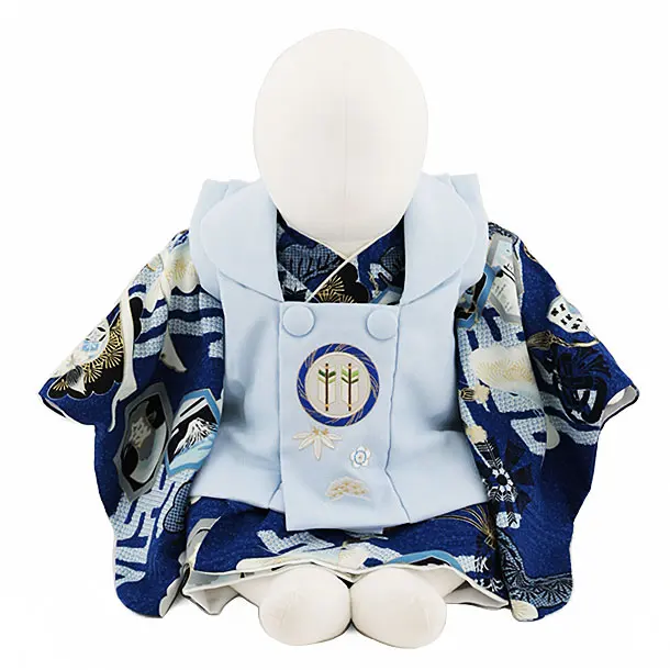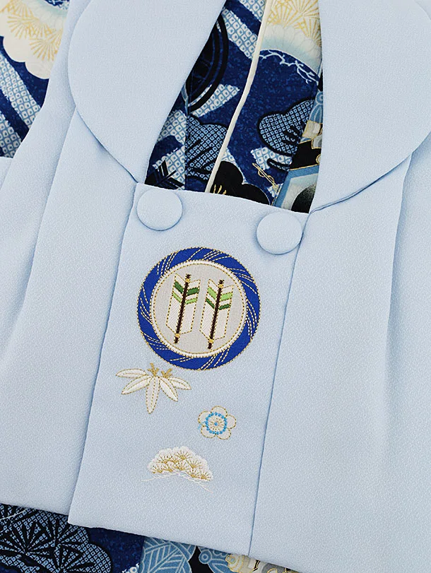 男児【100日~1歳用】0166 華徒然 水色×ブルー家紋に戦国武将/セパレート
