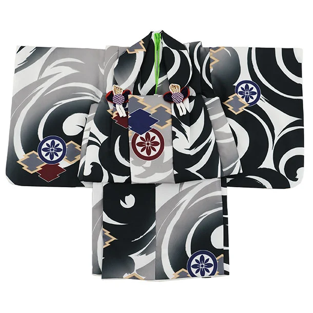 男児【100日~1歳用】0170 白黒/松皮菱に丸紋/セパレート