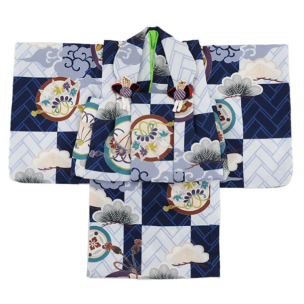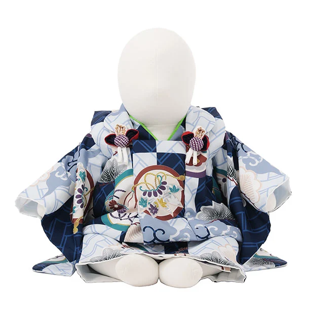 男児【100日~1歳用】0173 水色/松に丸紋/セパレート