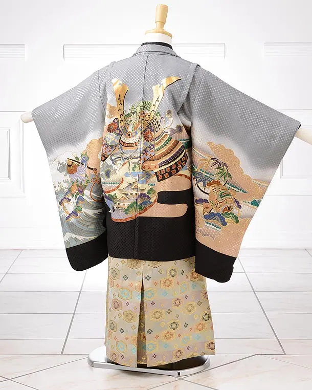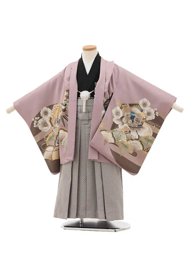 かんたん753レンタル(5歳男の子袴)0520グレー×黒兜.ベージュ袴
