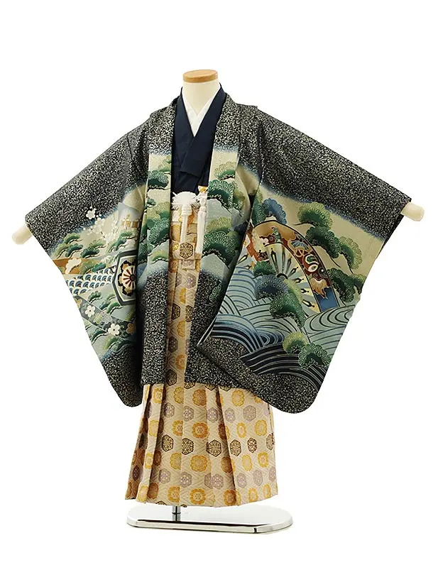 かんたん753レンタル(5歳男の子袴)0524紺鷹×グレー地袴