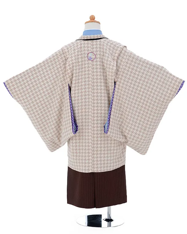 かんたん753レンタル(5歳男の子袴)0549ひさかたろまん×茶色地縞袴
