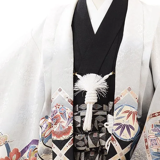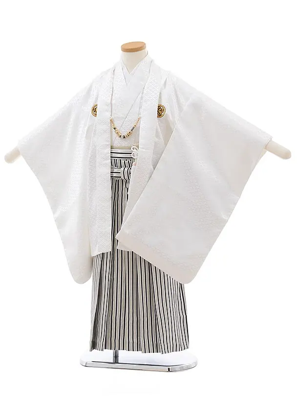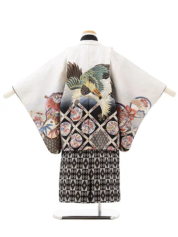 かんたん753レンタル(5歳男の子袴)0554白 黒鷹×黒地シルバー袴