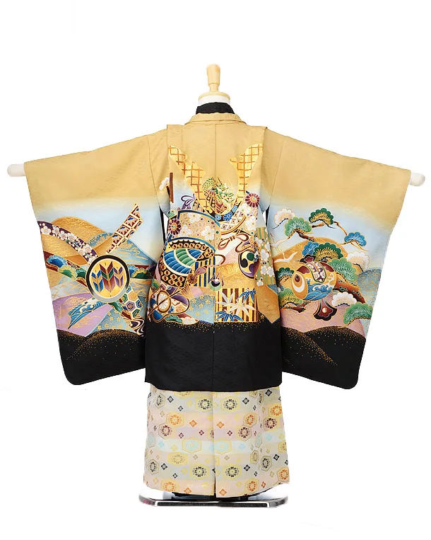 かんたん753レンタル(5歳男の子袴)0586黄土色かぶと×ベージュ袴