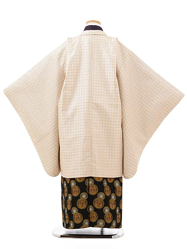 753レンタル(8歳,9歳男袴)0801ベージュ×黒地袴