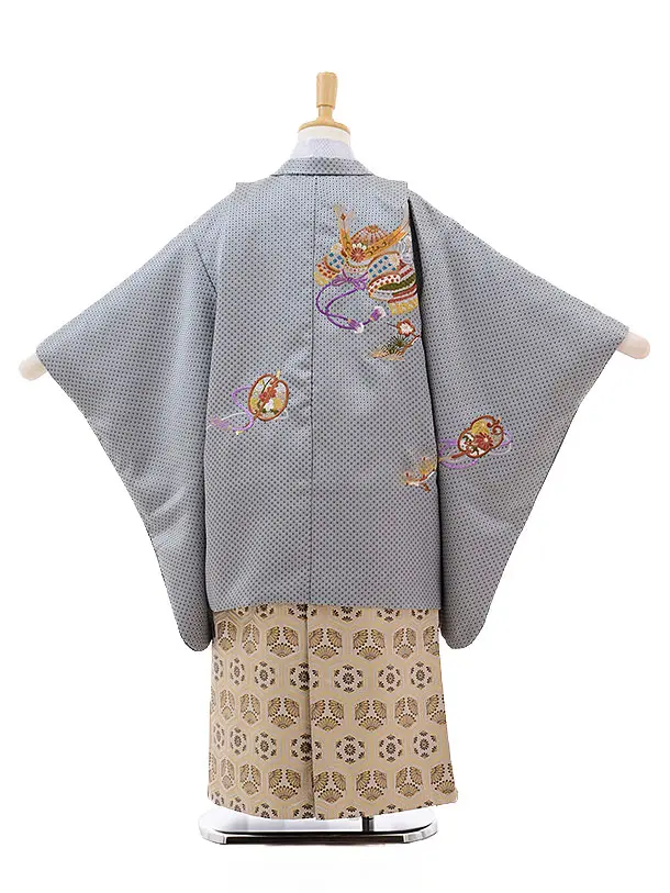 七五三レンタル(7歳男の子袴)0815 グレー地 兜 刺繍