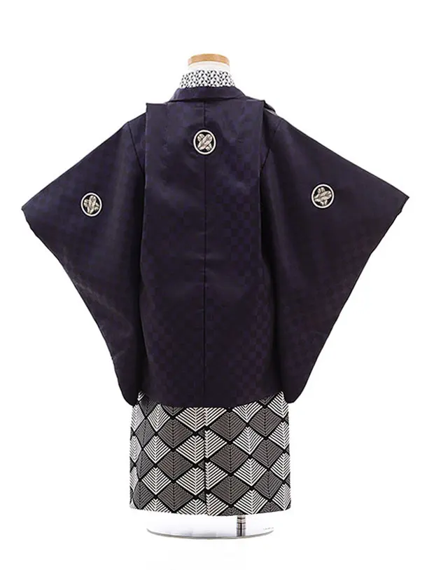 七五三(7歳男袴)0829 花わらべ パープル市松×黒シルバー袴
