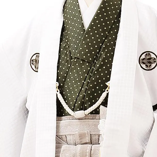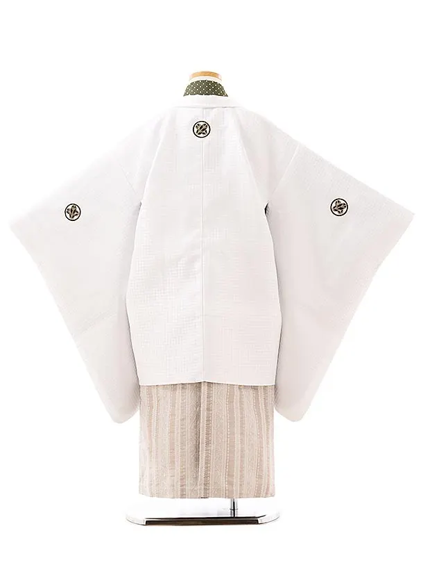 七五三レンタル(7歳男袴)0832花わらべ 白紋付xベージュ更紗袴
