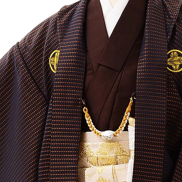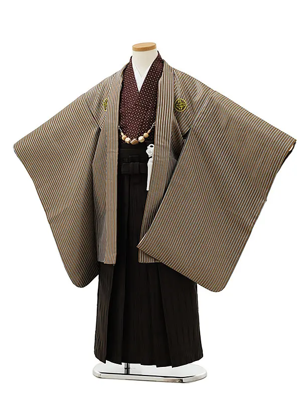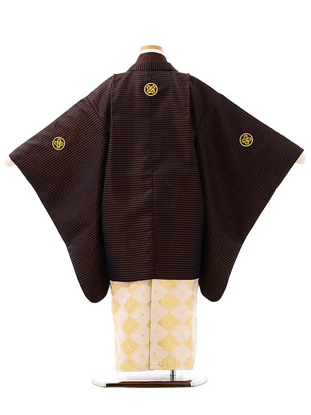 七五三レンタル(7歳男袴)0833花わらべ 紺茶色紋付xアイボリーゴールド袴