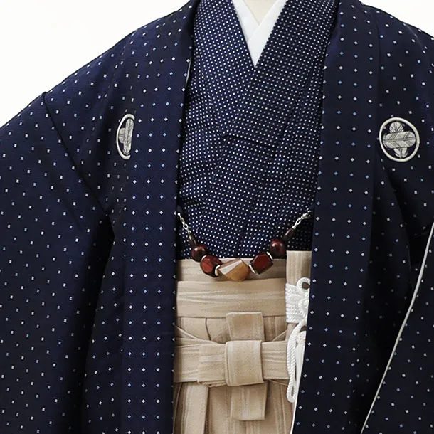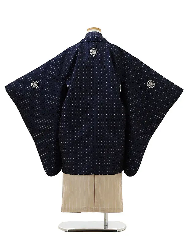 七五三レンタル(7歳男袴)0843花わらべ 紺ドットxベージュ袴