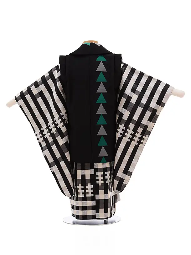 七五三レンタル(3男被布)2143 黒×白黒 チェック