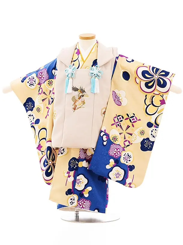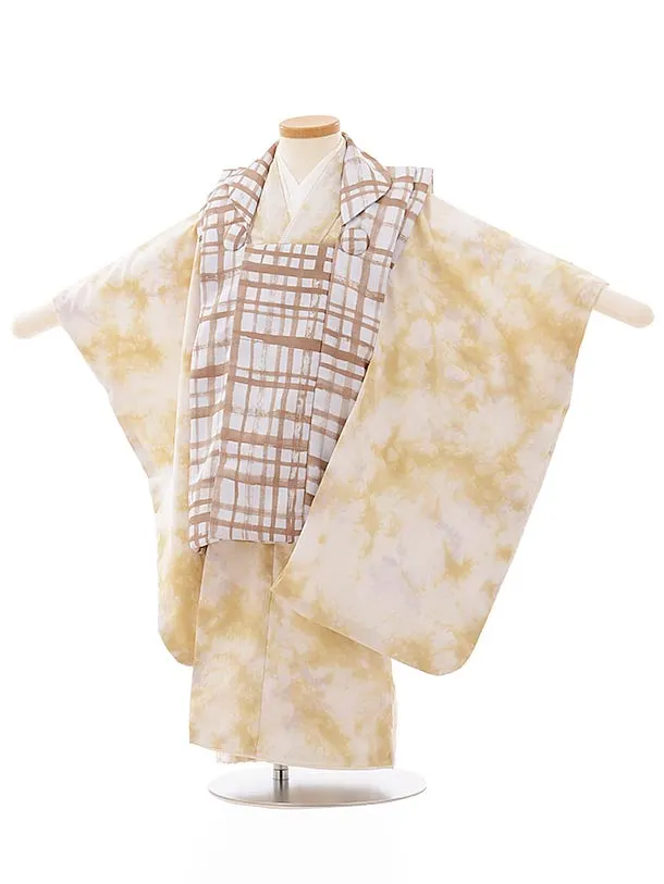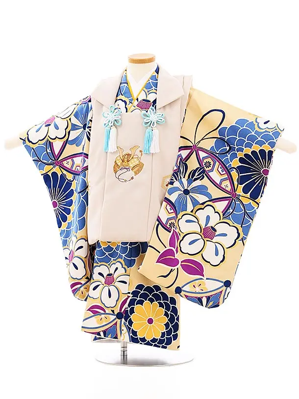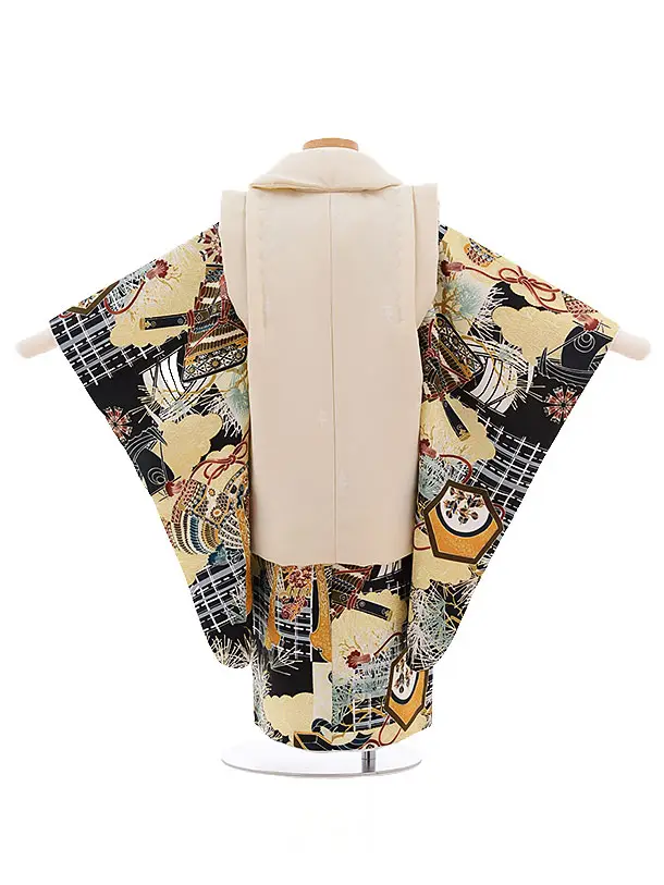 七五三レンタル(3男被布)2144 ベージュ×黒地 兜