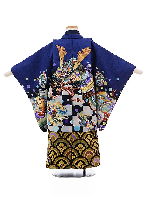 かんたん七五三(3歳男袴)2162 ブルー地 市松に兜