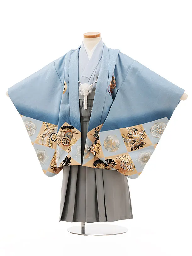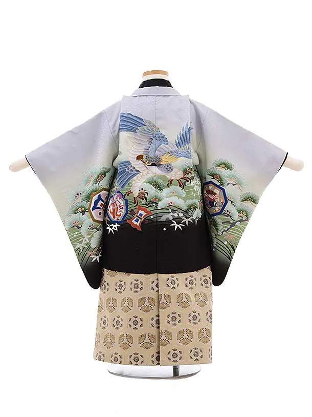 かんたん七五三(3男袴)2183 うすグレー 波に松鷹