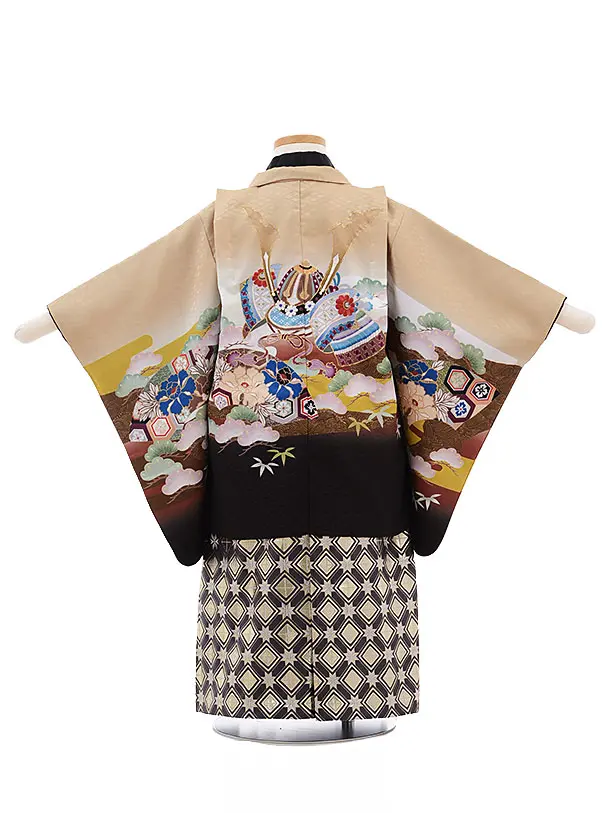 かんたん七五三(3男袴)2184 ベージュ 扇 兜