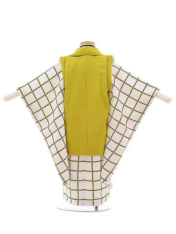 七五三レンタル(3歳男被布)2205 ライムグリーン×クリーム チェック