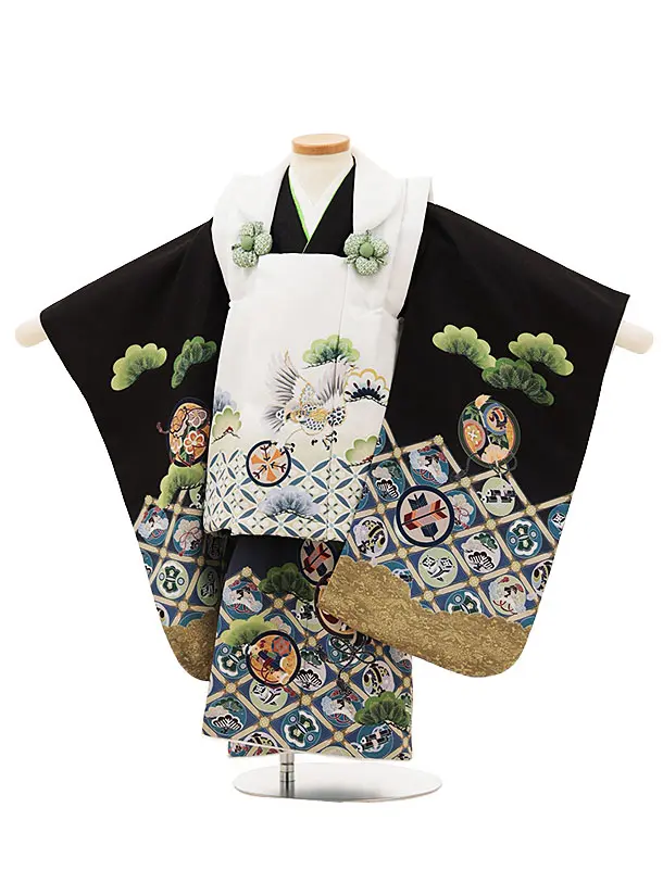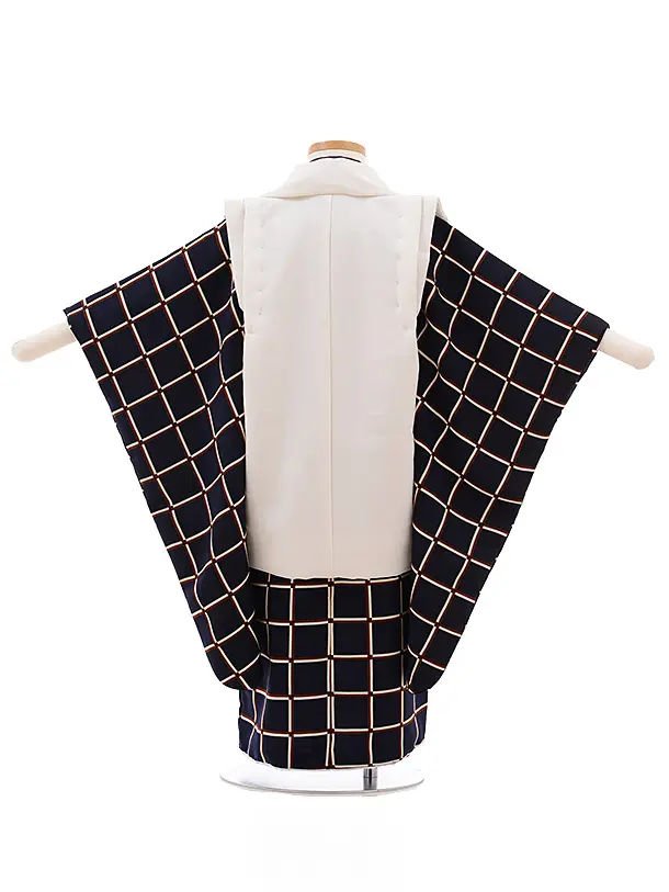 七五三レンタル(3歳男被布)2206 白×紺 チェック