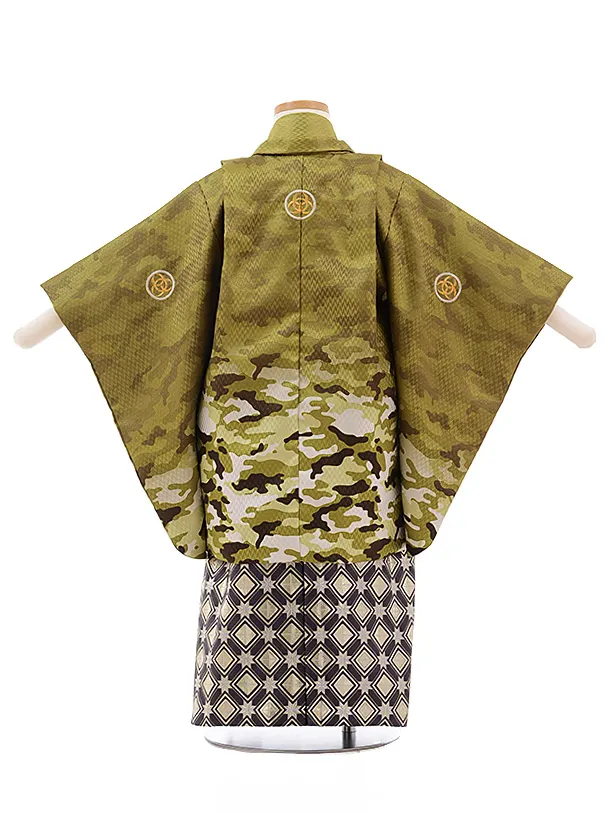 かんたん七五三(3歳男袴)2215 グリーンカモフラージュ×シルバ-