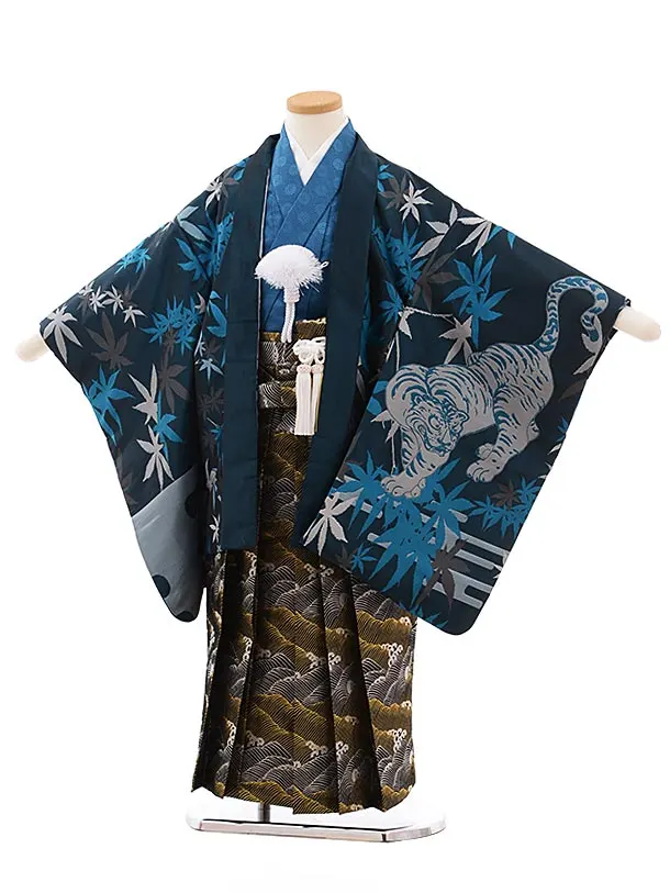 七五三(4歳男袴)2217黒紋付×黒縦縞