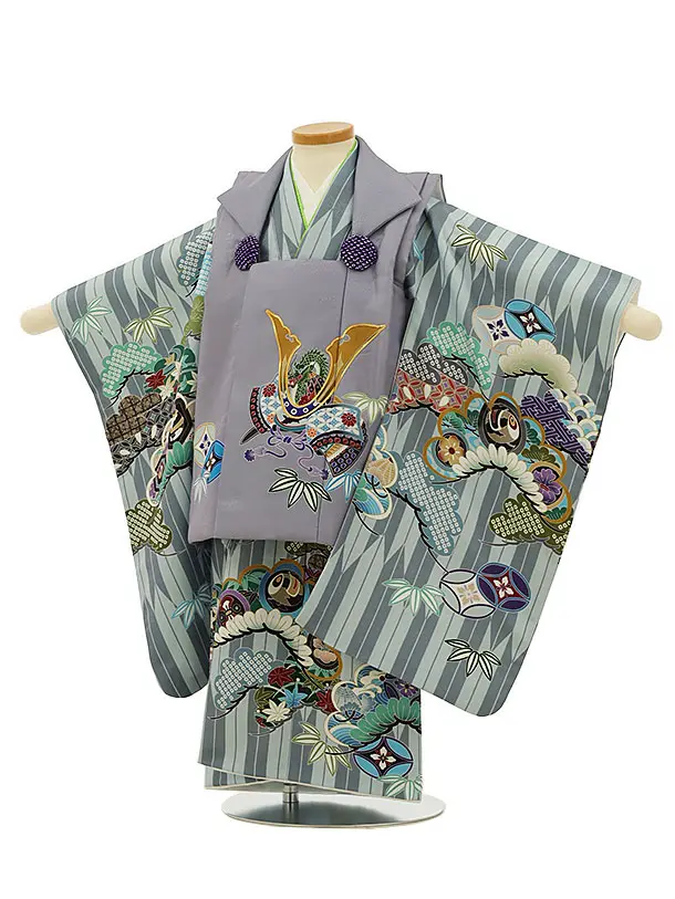 七五三レンタル(3歳男児被布)2218 うすグレー×グレー