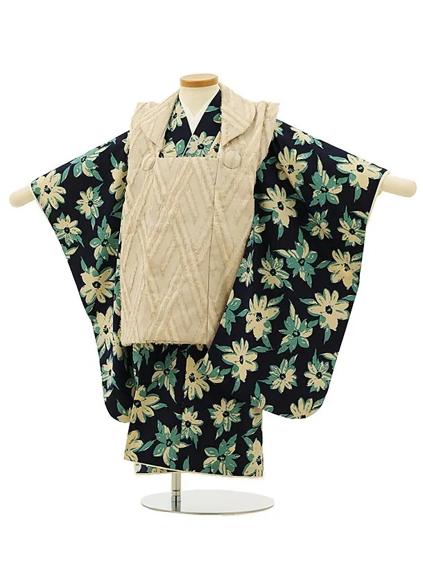 七五三レンタル(3歳男児被布)2221 ベージュ×紺