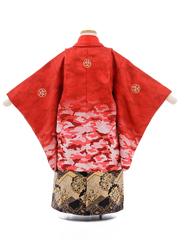 かんたん七五三(3.4歳男袴)2225 赤 カモフラージュ柄