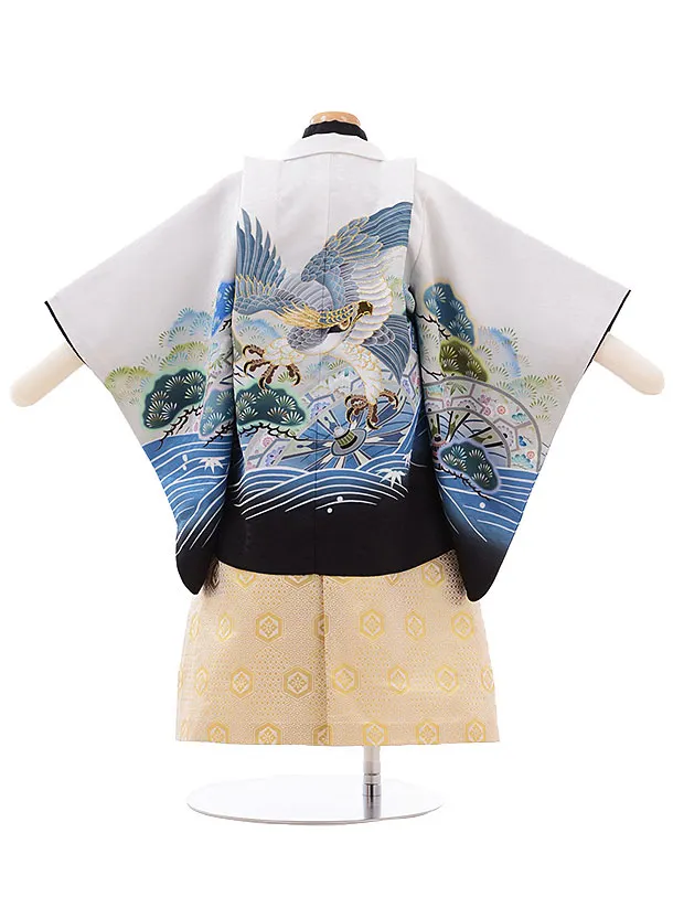 七五三(小さめ2歳男袴)2228 白地 波に鷹