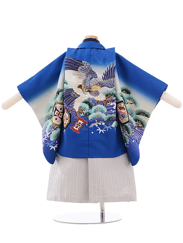 七五三(小さめ2歳男袴)2231 ブルーぼかし 松波に鷹