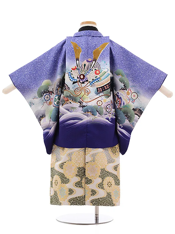 かんたん七五三(3.4歳男袴)2237 パープル地 松波にかぶと