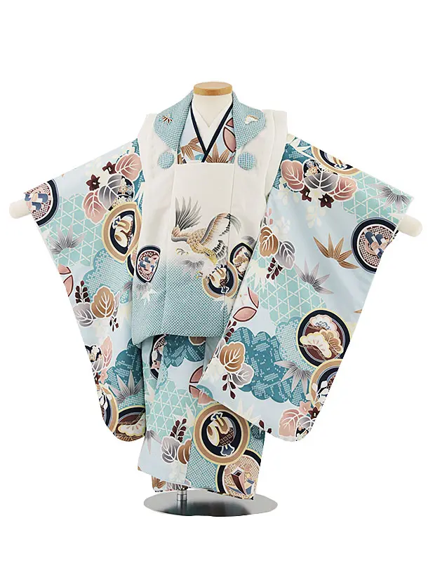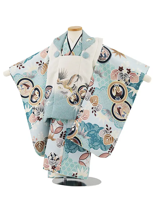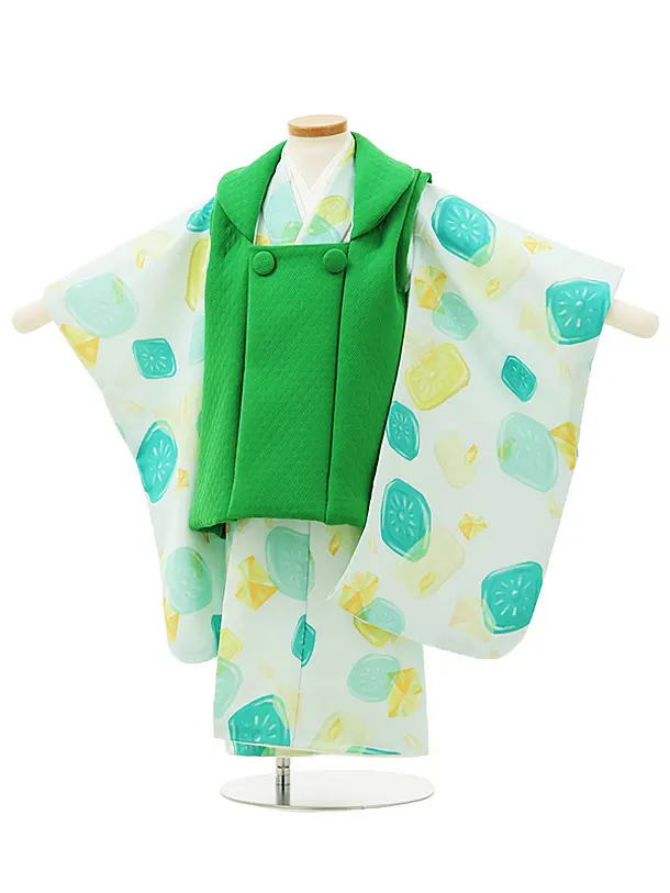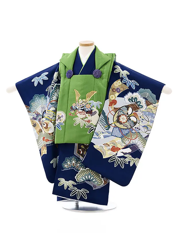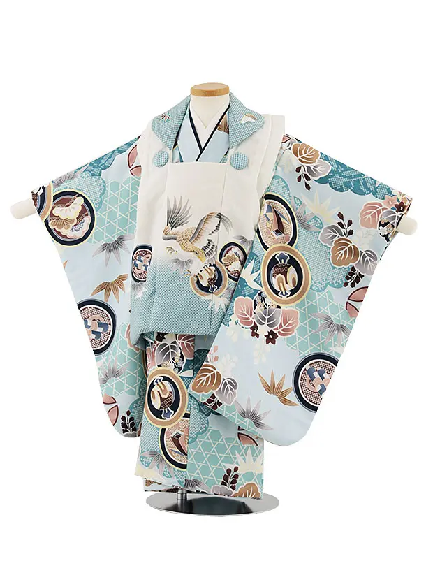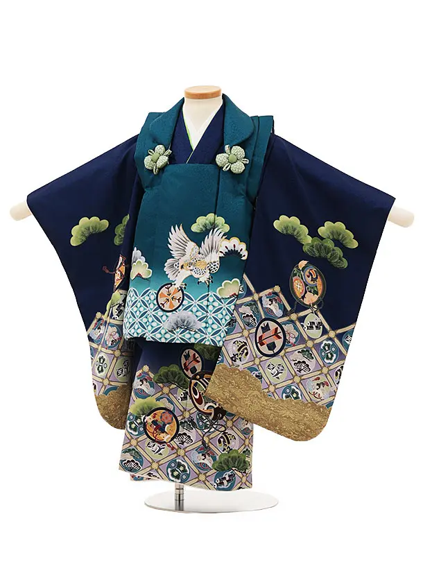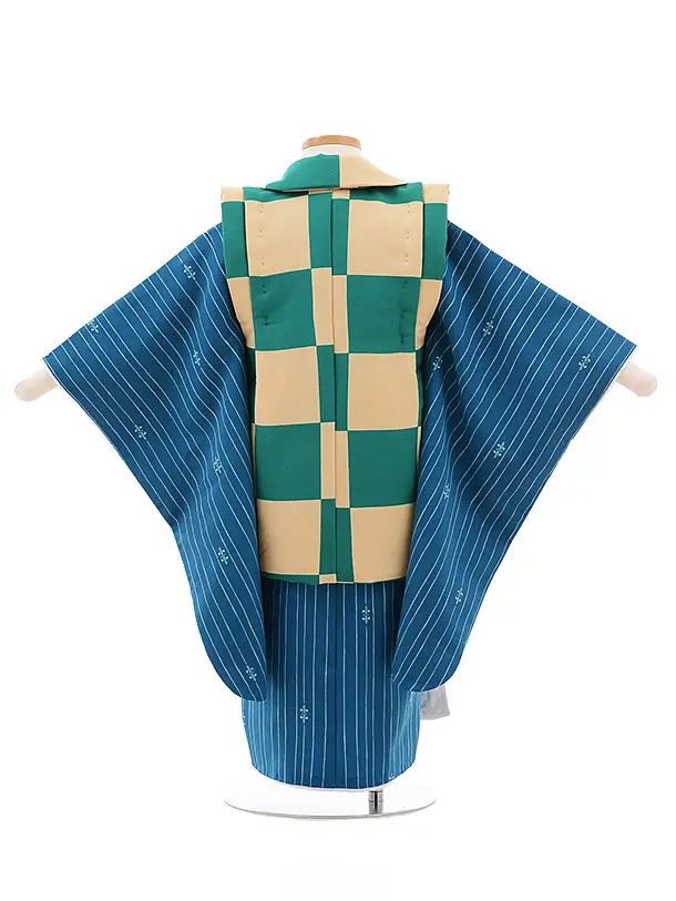 七五三レンタル(3歳男児被布)2247 グリーン市松×ターコイズストライプ